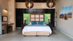 The executive suite sleeps two people and has its own kitchen, lounge, patio and boma braai area, neatly situated away from all the other suites for that extra bit of privacy.