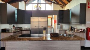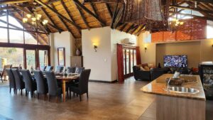 Exclusive use of these areas only applies if you’ve booked out the Morokolo Safari Lodge 4-Suite AND the Executive Suite together. Then your lodge has its own splash pool with sun loungers and umbrellas, a games room with pool table and board games, a 10-seater dining room and TV lounge, plus a fully-equipped kitchen with a full-sized fridge and freezer. Free WIFI is also available in this area. There is a patio with outside table and chairs for hosting meals of up to 10 guests.